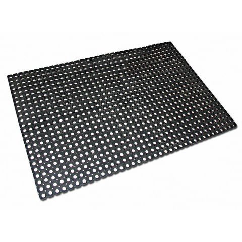 Крупноячеистое резиновое покрытие защищает помещение от уличной грязи.