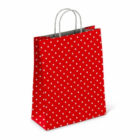 Крафт-пакет бумажный "Горох на красном" 22х12х25 см, с кручеными ручками, 100 г/м2, белый, 112979