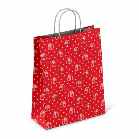 Крафт-пакет бумажный "Сюрприз" 22х12х25 см, с кручеными ручками, плотность 100 г/м2, белый, 113150