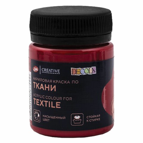 Краска по ткани акриловая "Декола", банка 50 мл, карминовая, 4128319