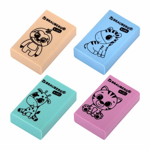 Ластик BRAUBERG KIDS "Школьный", 26х17х7 мм, прямоугольный, пастельные цвета ассорти, 271991