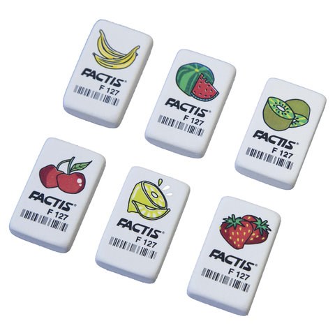 Ластик бренда FACTIS, произведенный в Испании, отлично подходит для удаления надписей, сделанных чернографитным карандашом.