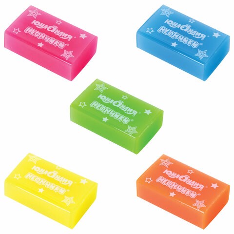 Ластик ЮНЛАНДИЯ "НЕОНЧИКИ", 38х24х12 мм, цвет ассорти, экологичный ПВХ, 228077