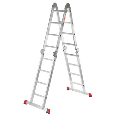 Лестница-трансформер алюминиевая 4х4 ступени, высота 4,5 м (4 секции по 1,2 м) до 150 кг, вес 16,5 кг, НОВАЯ ВЫСОТА, 3320404