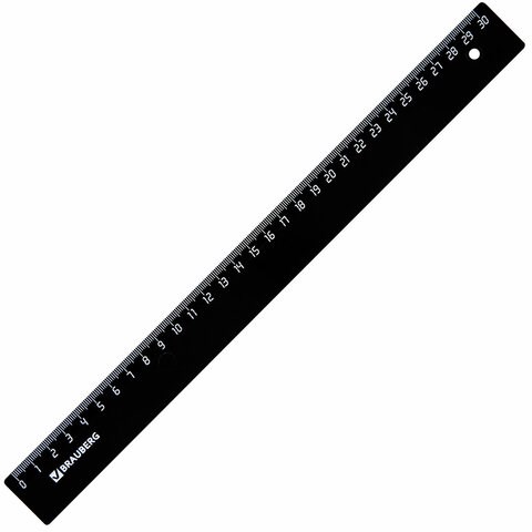 Линейка пластик 30 см, BRAUBERG, непрозрачная, черная, 210612