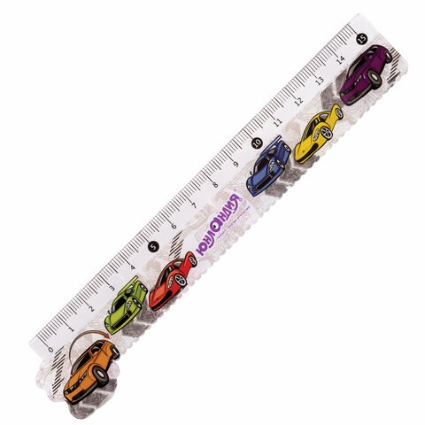 Линейка пластиковая 15 см ЮНЛАНДИЯ "МАШИНКИ", фигурная, цветная печать, с волнистым краем, 210729