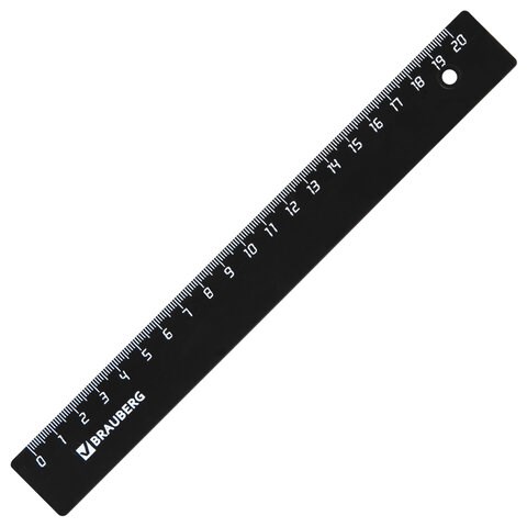 Линейка пластиковая 20 см, BRAUBERG, непрозрачная, черная, 210607