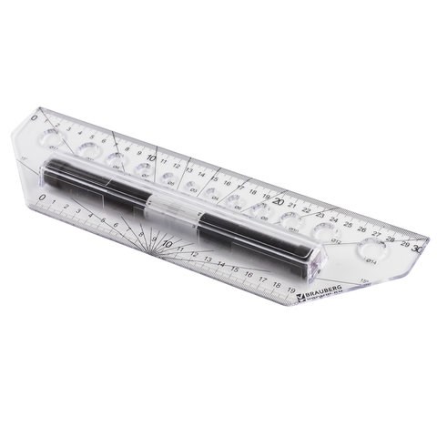 Линейка с роликом (рейсшина) 30 см, BRAUBERG, металлический ролик, коробка с подвесом, 210647
