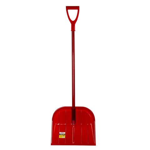 Лопата снеговая 44х38 см "ПОЛИКАРБОНАТ" ГРАНДМАСТЕР, ПРОЧНАЯ, алюминиевый черенок с V-ручкой 130 см, цвет красный, 606625