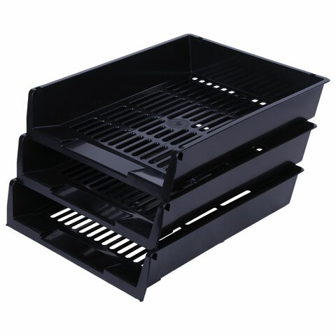 Лотки горизонтальные для бумаг, КОМПЛЕКТ 3 шт., 340х270х70 мм, черный, BRAUBERG "Office", 237255