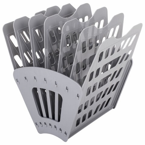 Лоток для бумаг веерный BRAUBERG "Basic" 7-ми секционный, 6 отделений, сетчатый, серый, 237020