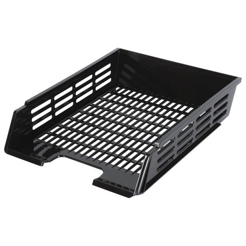 Лоток горизонтальный для бумаг BRAUBERG "Basic", А4 (360х270х75 мм), с пазами, сетчатый, черный, 237011