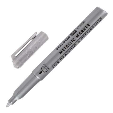 Маркер для декорирования и рисования СЕРЕБРИСТЫЙ BRAUBERG ART METALLIC, линия письма 1-3 мм, 152439