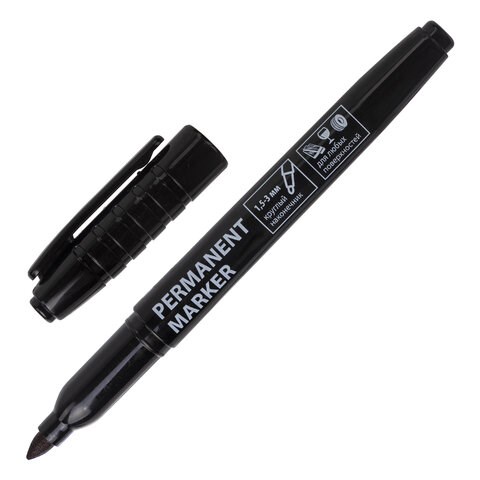 Маркер перманентный BRAUBERG, ЧЕРНЫЙ, круглый наконечник, 1,5-3 мм, 151629