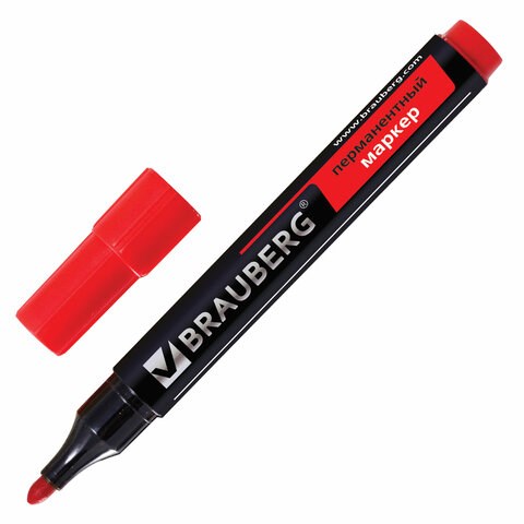 Маркер перманентный BRAUBERG "Contract", КРАСНЫЙ, круглый наконечник, 3 мм, 150467