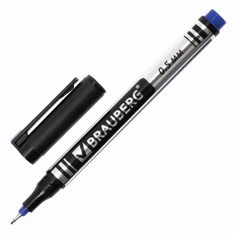 Маркер перманентный BRAUBERG "Jet", СИНИЙ, супертонкий металлический наконечник 0,5 мм, 150508