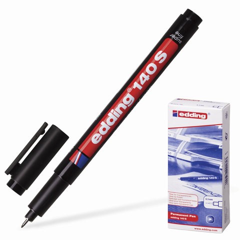 Маркер перманентный для любой гладкой поверхности EDDING 140, ЧЕРНЫЙ, 0,3 мм, металлический наконечник, E-140/1