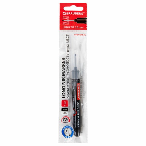Маркер с длинным наконечником разметочный BRAUBERG UNIVERSAL предназначен для маркировки и разметки в труднодоступных местах на любых видах поверхности: бумага, дерево, стекло, металл, натуральная кожа, ткань, камень, бетон, плитка.