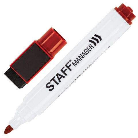 Маркер стираемый для белой доски на магните со стирателем, КРАСНЫЙ, STAFF "Manager" WBM-002, 3 мм, 152003