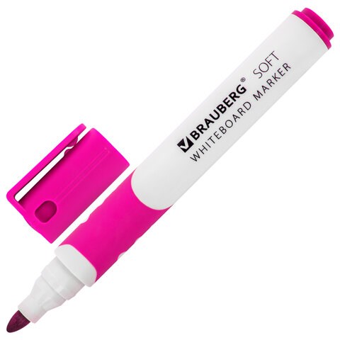 Высококачественный маркер BRAUBERG "SOFT" для белой доски. Предназначен для письма на досках с магнитно-маркерной поверхностью.