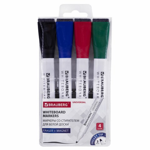 Набор маркеров на магните со стирателем BRAUBERG "UNIVERSAL" предназначен для использования на белых досках с магнитно-маркерной поверхностью. Идеально подходит для проведения презентаций, совещаний, уроков.