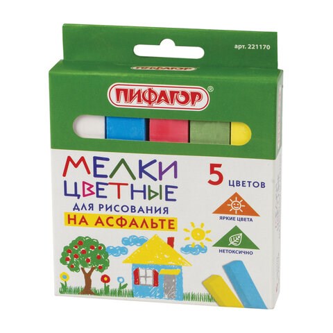 Цветной мел ПИФАГОР предназначен для письма и рисования на асфальте.