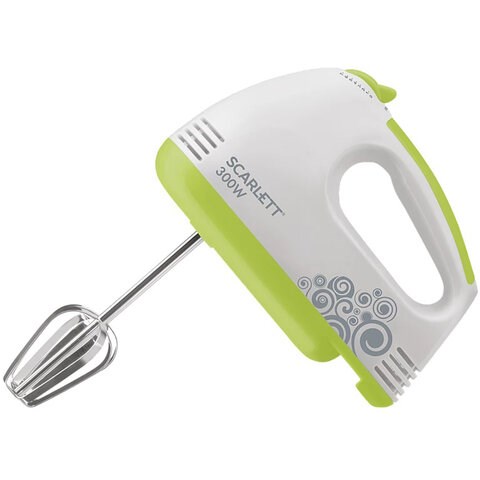 Миксер SCARLETT SC-HM40S05, 300Вт, 7 скоростей, 2 венчика, 2 крюка для теста, белый