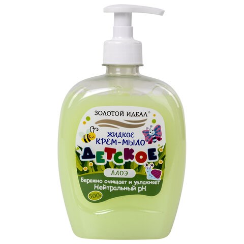 Мыло-крем жидкое ДЕТСКОЕ 500 г, ЗОЛОТОЙ ИДЕАЛ, Алоэ, дозатор, 605518
