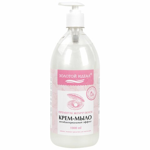 Мыло-крем жидкое с АНТИБАКТЕРИАЛЬНЫМ ЭФФЕКТОМ 1 л ЗОЛОТОЙ ИДЕАЛ "Премиум жемчужное", дозатор, 608284