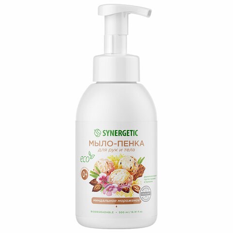 Мыло-пенка гипоаллергенное для рук и тела 500 мл, SYNERGETIC "Миндальное мороженое", дозатор, 105009
