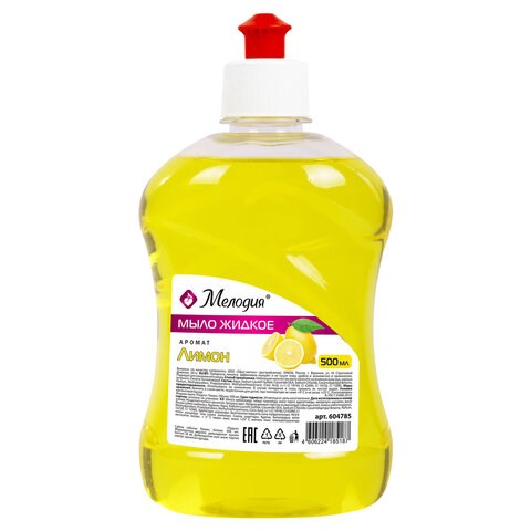 Мыло жидкое 500 мл, МЕЛОДИЯ "Лимон", пуш-пул, 604785