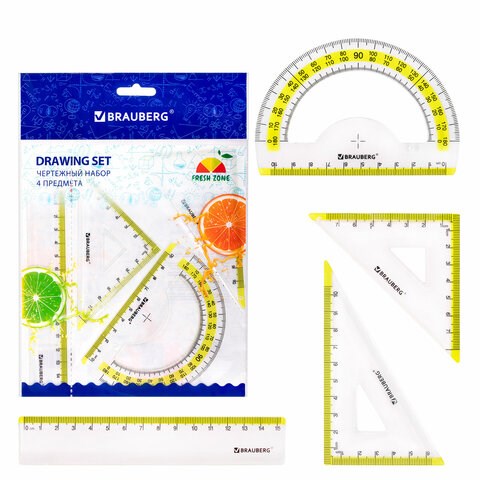 Набор чертежный BRAUBERG "FRESH ZONE" предназначен для выполнения чертежных и измерительных работ в школе и дома.