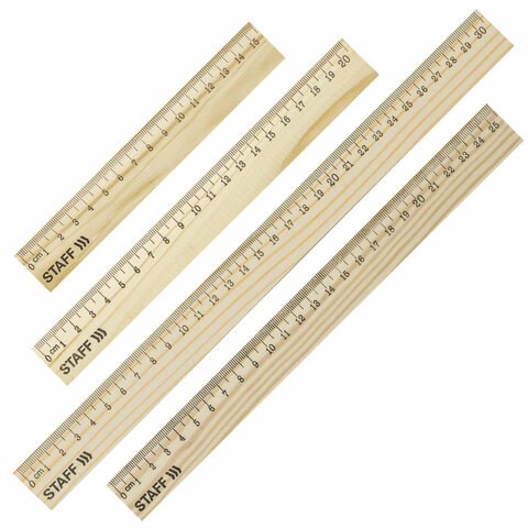 Набор деревянных линеек STAFF, 15 см, 20 см, 25 см, 30 см, канадская сосна, 210803