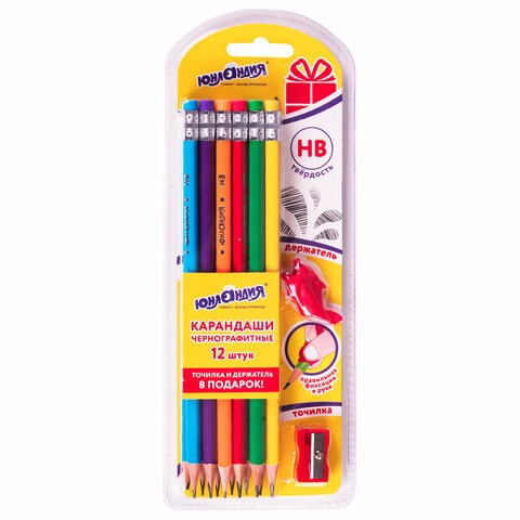 Набор ЮНЛАНДИЯ "ЮНЛАНДИК НА МОРЕ": 12 карандашей чернографитных HB + точилка + держатель, 181784