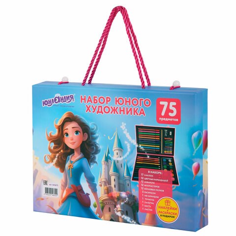 Набор ЮНОГО ХУДОЖНИКА "ПРИНЦЕССА" для рисования и творчества в кейсе ЮНЛАНДИЯ, 75 предметов, 665673
