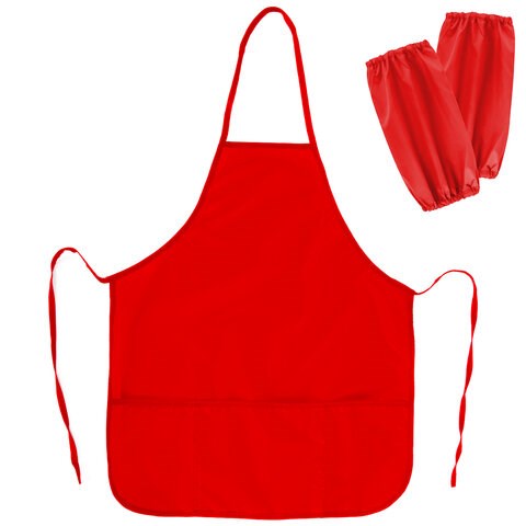 Предназначено для учеников начальной школы. Накидка-фартук и нарукавники защитят одежду от загрязнений в процессе занятий творчеством. Предусмотрено для многоразового использования.