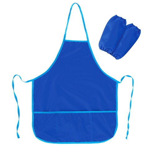 Предназначено для учеников начальной школы. Накидка-фартук и нарукавники защитят одежду от загрязнений в процессе занятий творчеством. Предусмотрено для многоразового использования.