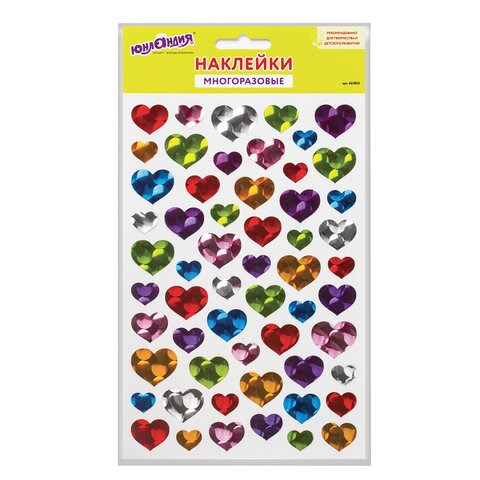 Наклейки виниловые "Сердца", многоразовые, голографические, 14х21 см, ЮНЛАНДИЯ, 661833
