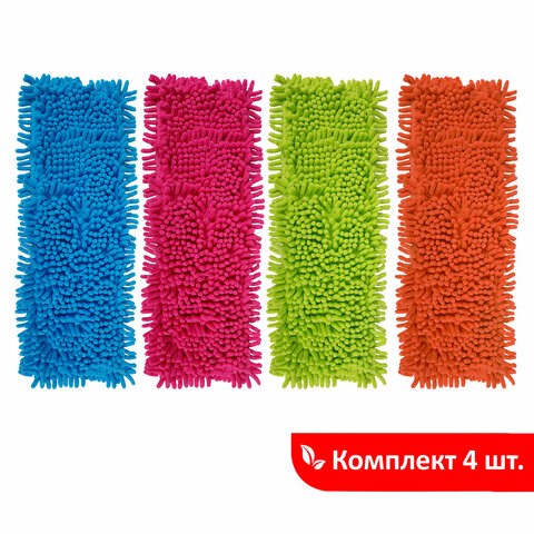 Комплект из 4-х ярких насадок МОП из микрофибры букли/синель LAIMA предназначен для проведения сухой и влажной уборки помещений. Разные цвета можно применять в разных помещениях. Имеет повышенную впитываемость.МОПы УНИВЕРСАЛЬНЫЕ для флаундеров 38-42 см.