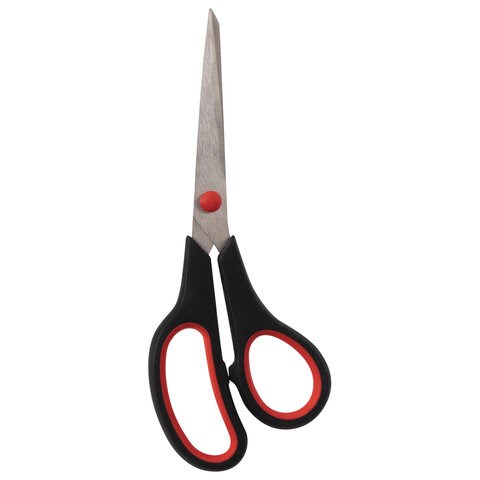 Ножницы STAFF EVERYDAY, 195 мм, бюджет, резиновые вставки, черно-красные, ПВХ чехол, 237499