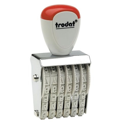 Нумератор TRODAT предназначен для нумерации коробок, документов, бланков, конвертов, квитанций, накладных. Набор номера производится вращением колесиков. Содержит знаки "пробел", "точка", "слэш", "прочерк".