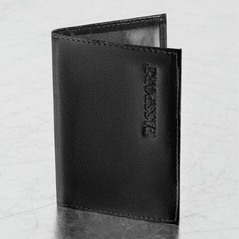 Обложка для паспорта натуральная кожа галант, "PASSPORT", черная, BRAUBERG, 237179