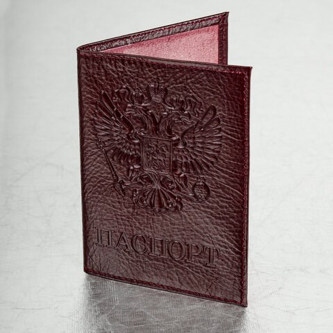 Обложка для паспорта натуральная кожа "Virginia", "Герб", темно-бордовая, BRAUBERG, 237199