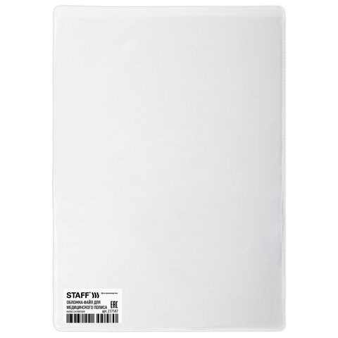 Обложка-файл для медицинского полиса, 225х155 мм, ПВХ, 120 мкм, прозрачная, STAFF, 237587