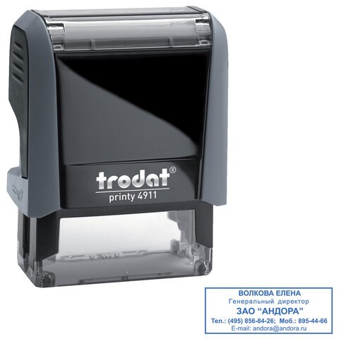 Автоматическая оснастка TRODAT предназначена для наклеивания на нее клише штампа, факсимиле и другой символики. Окрашивание клише и постановка оттиска происходит автоматически при нажатии на оснастку.