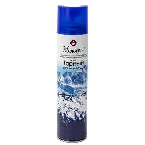 Освежитель воздуха МЕЛОДИЯ "Горный" быстро и эффективно устраняет неприятные запахи и освежает воздух в жилых и бытовых помещениях. Имеет приятный стойкий аромат, который надолго наполнит помещение свежестью.