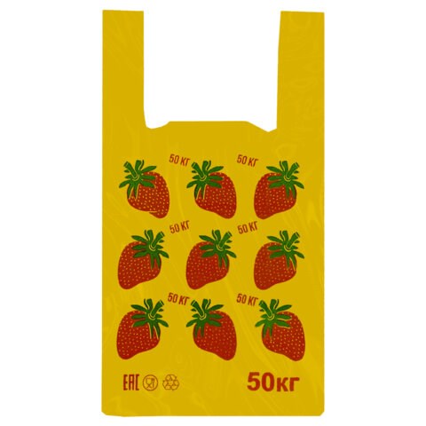 Пакет "майка" КОМПЛЕКТ 100 штук, 30+15х55, ПНД "Клубники", 15 мкм, LAIMA, 700793