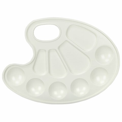 Палитра предназначена для смешивания красок. Удобна и проста в использовании. Позволяет получать новые оттенки путем смешивания цветов. По краю палитры есть 6 ячеек для размещения красок, а в центре палитры 4 отделения для смешивания.