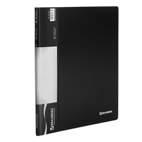 Папка 10 вкладышей BRAUBERG стандарт, черная, 0,6 мм, 221592