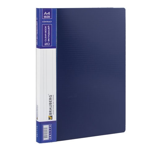 Папка 20 вкладышей BRAUBERG "Contract", синяя, вкладыши-антиблик, 0,7 мм, бизнес-класс, 221772